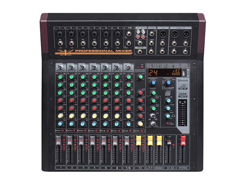 產(chǎn)品特點(diǎn) 6路獨(dú)立切換MIC XLR輸入/LINE單聲道輸入通道,1組立體聲; 每通道3段EQ均衡器; 60MM高精度推子; 每個(gè)通道2個(gè)AUX發(fā)送:用于監(jiān)視應(yīng)用程序效...